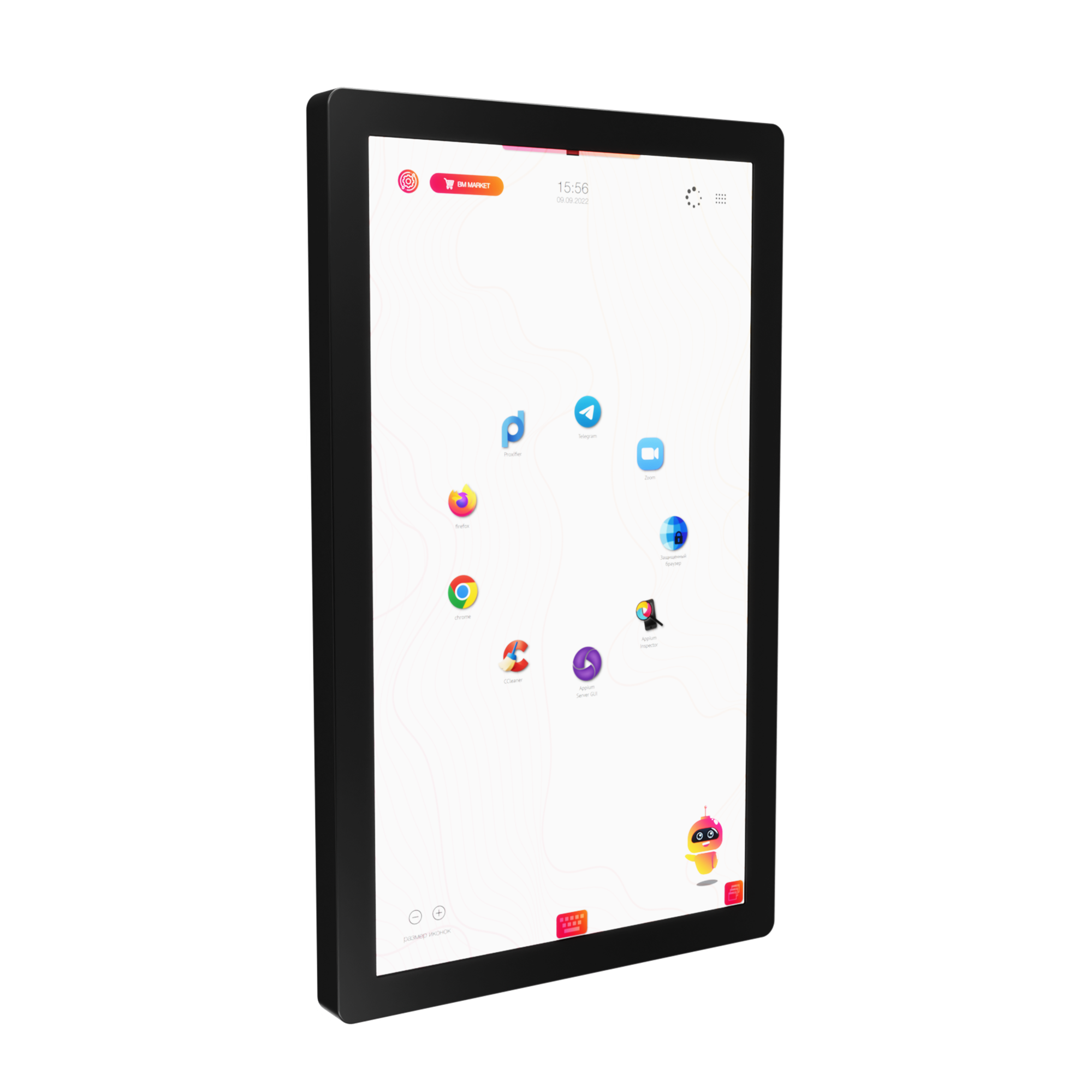 - Прочная и безопасная конструкция для интенсивного использования — корпус выполнен из долговечных материалов, экран защищен прочным антивандальным стеклом. Панель предназначена для настенного крепления или установки на мобильную стойку, что обеспечивает ее устойчивость и безопасность в условиях активной эксплуатации в учебных заведениях и офисах.