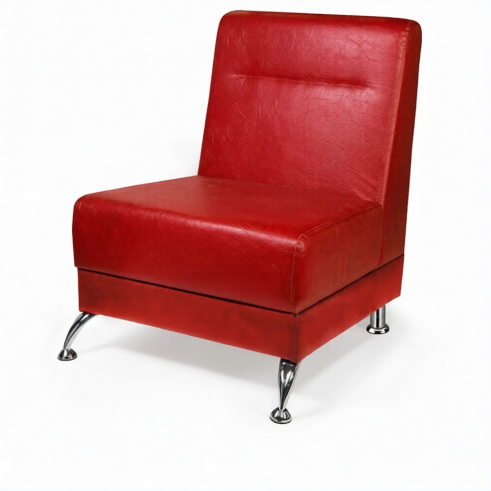 Опоры диван-кресла хромированные. Модель не снабжается раскладным механизмом, что делает ее компактной и удобной для небольших помещений.