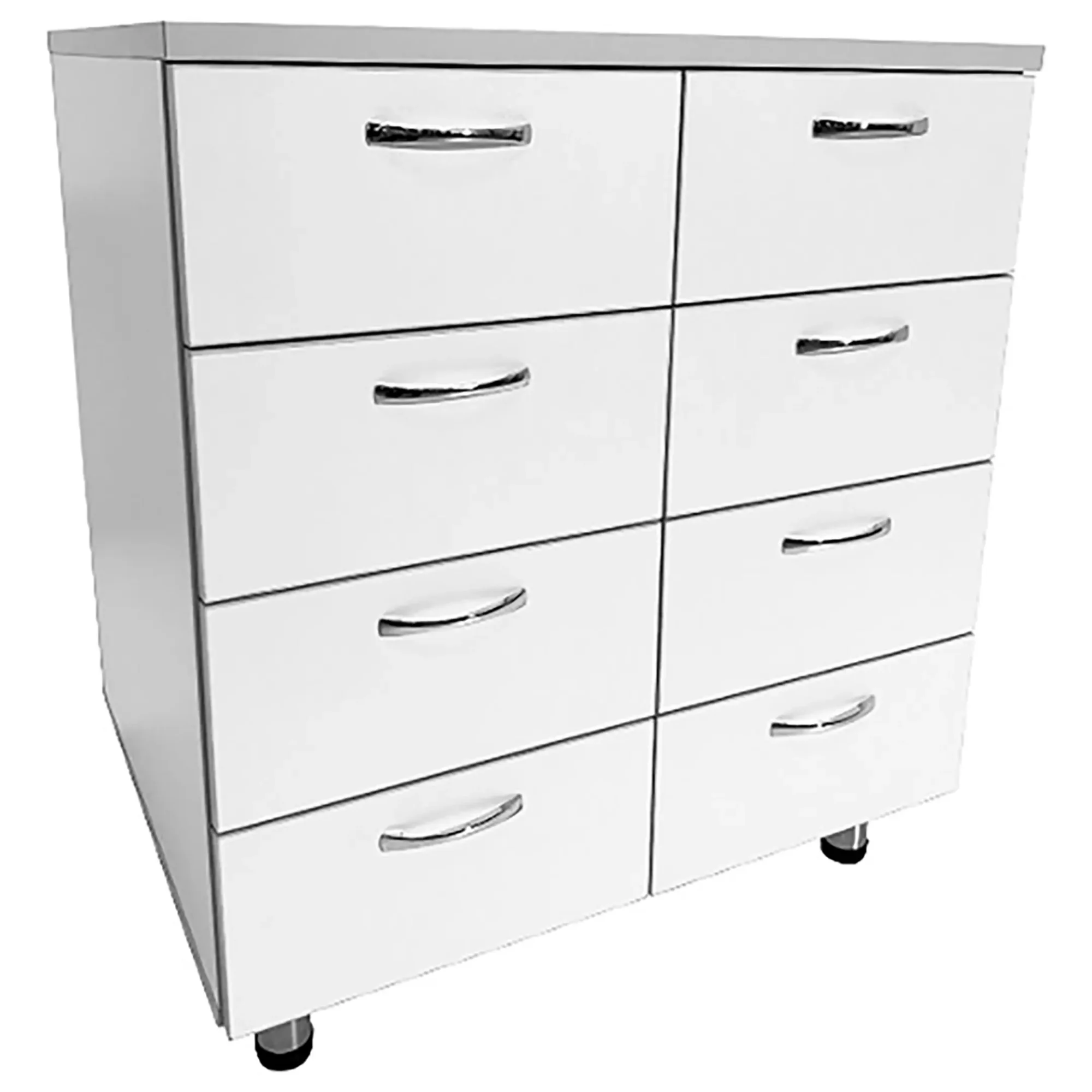 • В тумбе под столешницей предусмотрено 8 выдвижных ящиков, что обеспечивает удобное и компактное хранение различного медицинского оборудования.