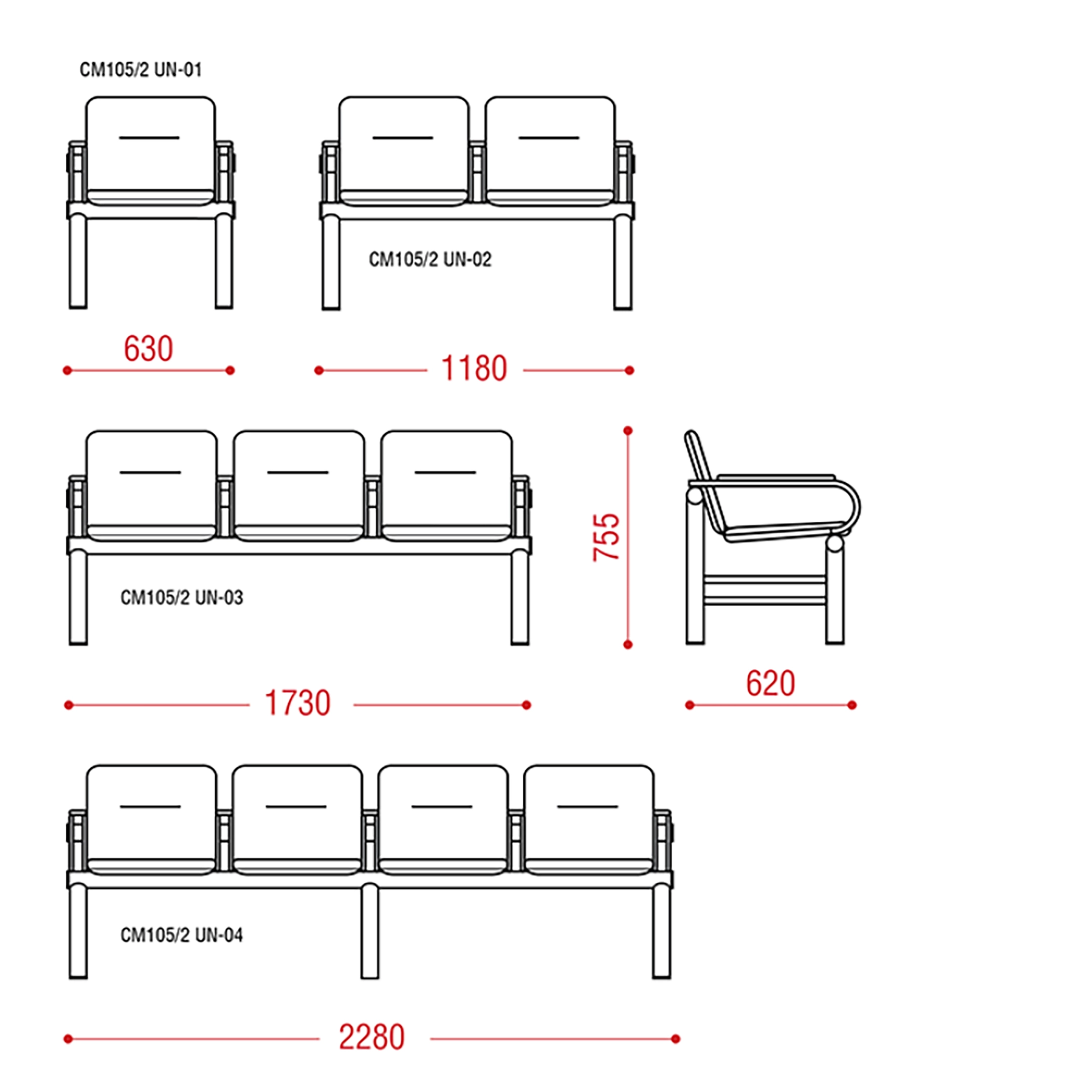 Эта многоместная секция прекрасно впишется в холл или рекреацию. Модель обладает прочной конструкцией и улучшенной эргономикой.