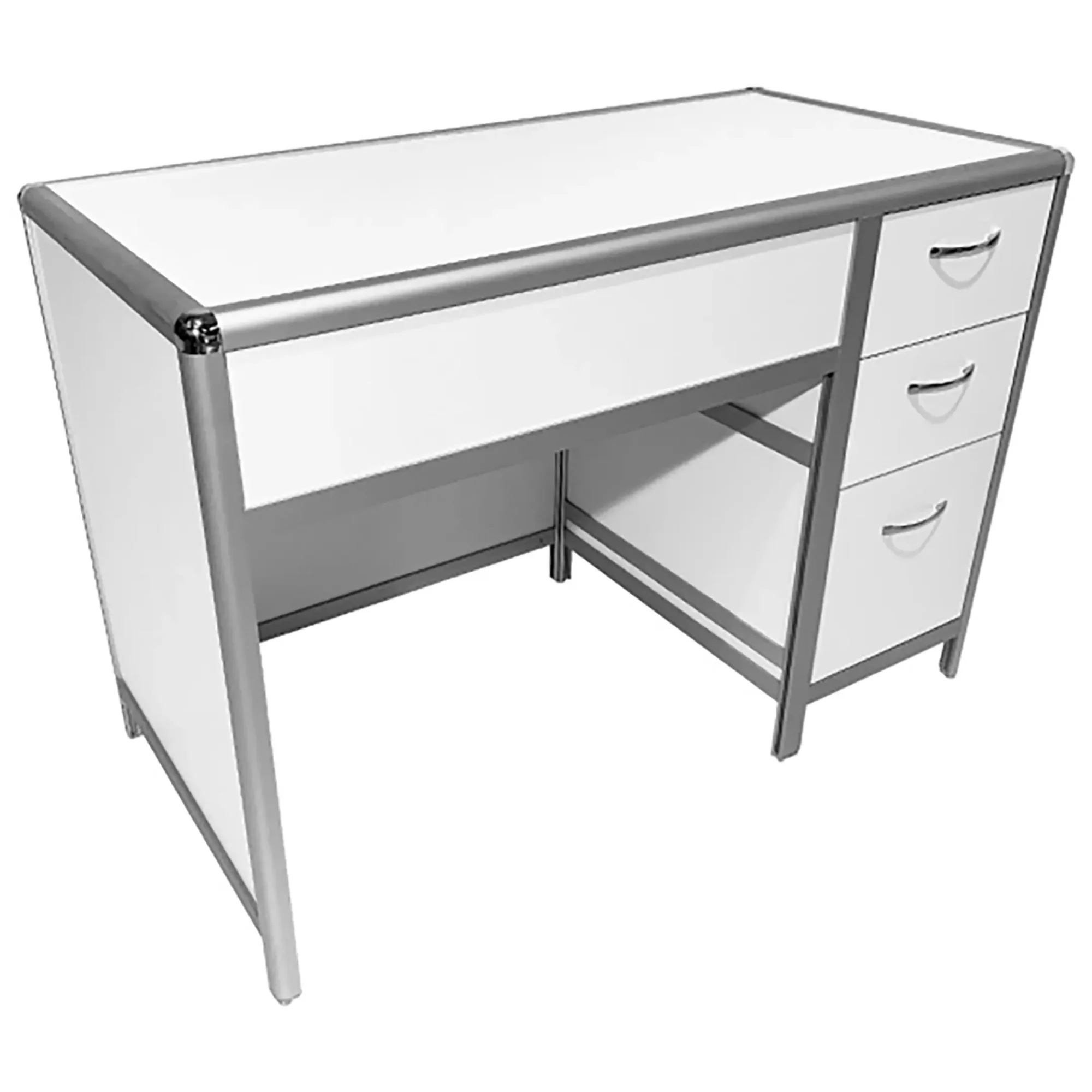 Стол лабораторный MED 10.003al (белый) представляет собой идеальное решение для организации рабочих мест сотрудников в лабораториях и медицинских учреждениях. Модель оснащена боковой тумбой с тремя выдвижными ящиками. Каркас выполнен из алюминиевого профиля, столешница из ЛДСП толщиной 16 мм.