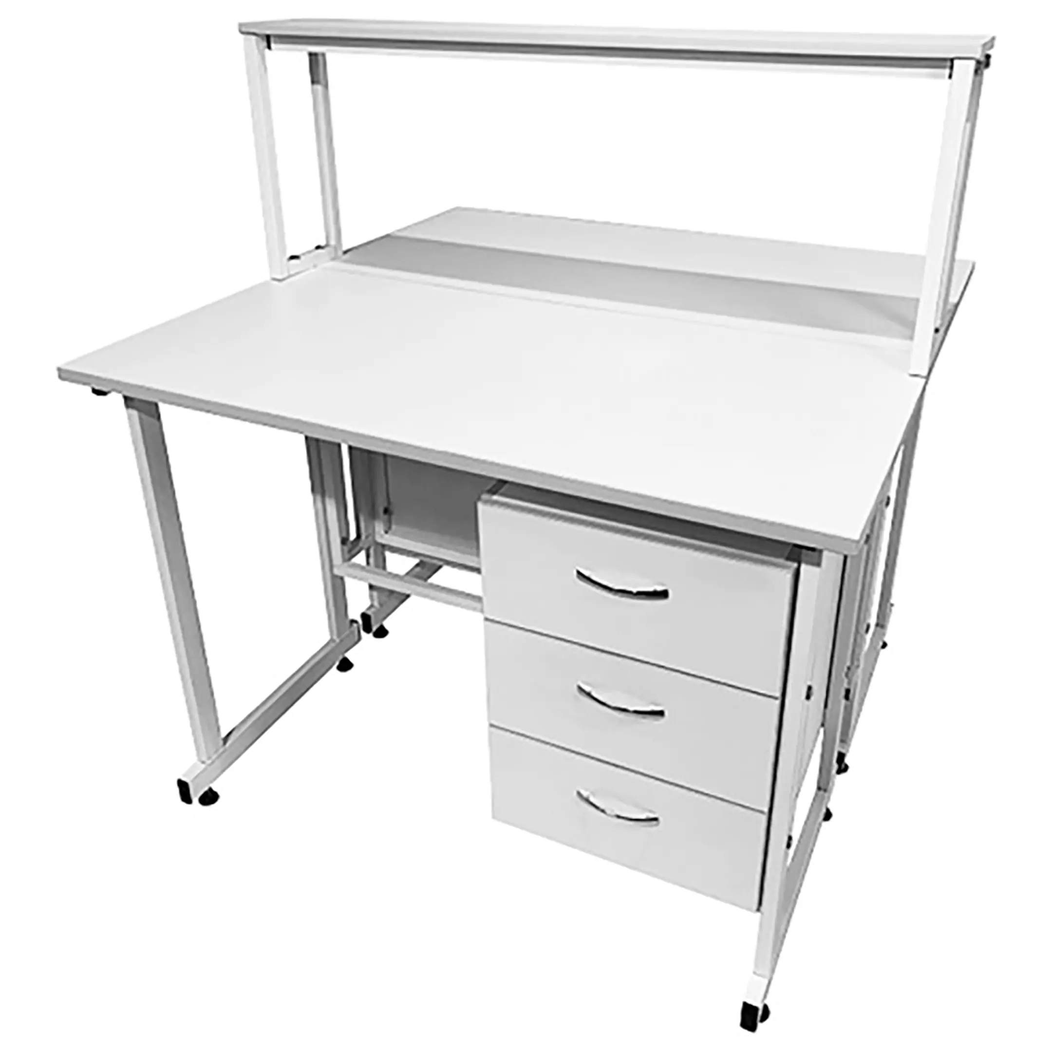 Стол лабораторный островной с надстройкой Сло 22.009 (белый) — это функциональное решение для организации двух независимых рабочих мест в лабораториях и медицинских учреждениях. Модель оснащена двумя рабочими местами, каждое с подвесной тумбой с тремя выдвижными ящиками, и центральной надстройкой с одной полкой. Каркас выполнен из стального профиля, столешницы из ЛДСП толщиной 22 мм.