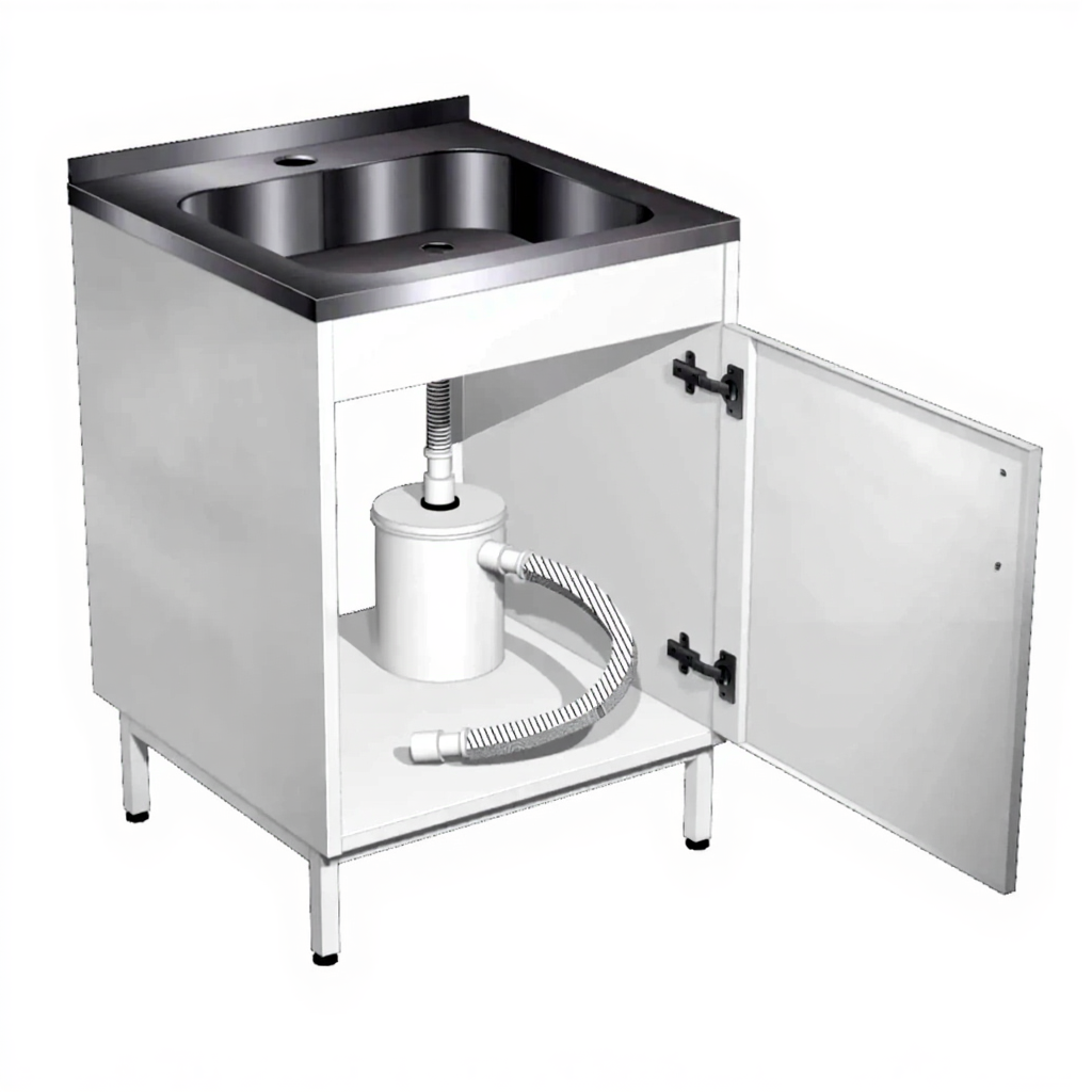 - Наличие гипсоотстойника — позволяет эффективно отделять гипс и другие осадки при мытье посуды, предотвращая засорение канализации.