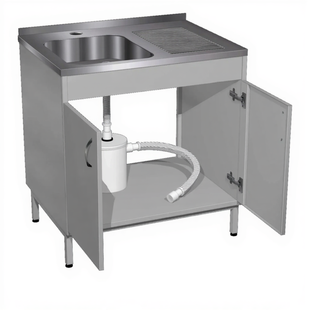 - Наличие гипсоотстойника — позволяет эффективно отделять гипс и другие осадки при мытье посуды, предотвращая засорение канализации.