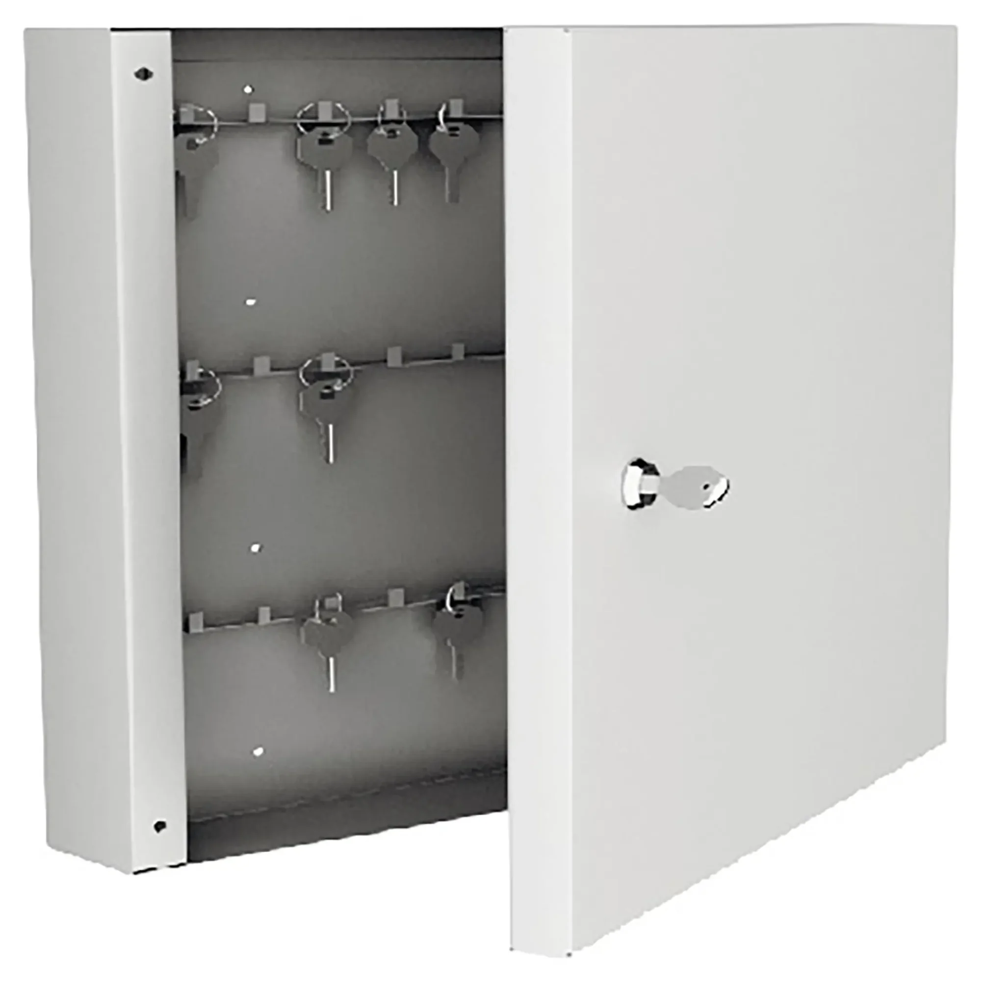 - Надежная защита от несанкционированного доступа — прочный металлический корпус с замком обеспечивает базовый, но достаточный уровень безопасности, защищая ключи от кражи, потери или случайного повреждения посторонними лицами. Это важный элемент для поддержания контроля над доступом в служебные помещения.