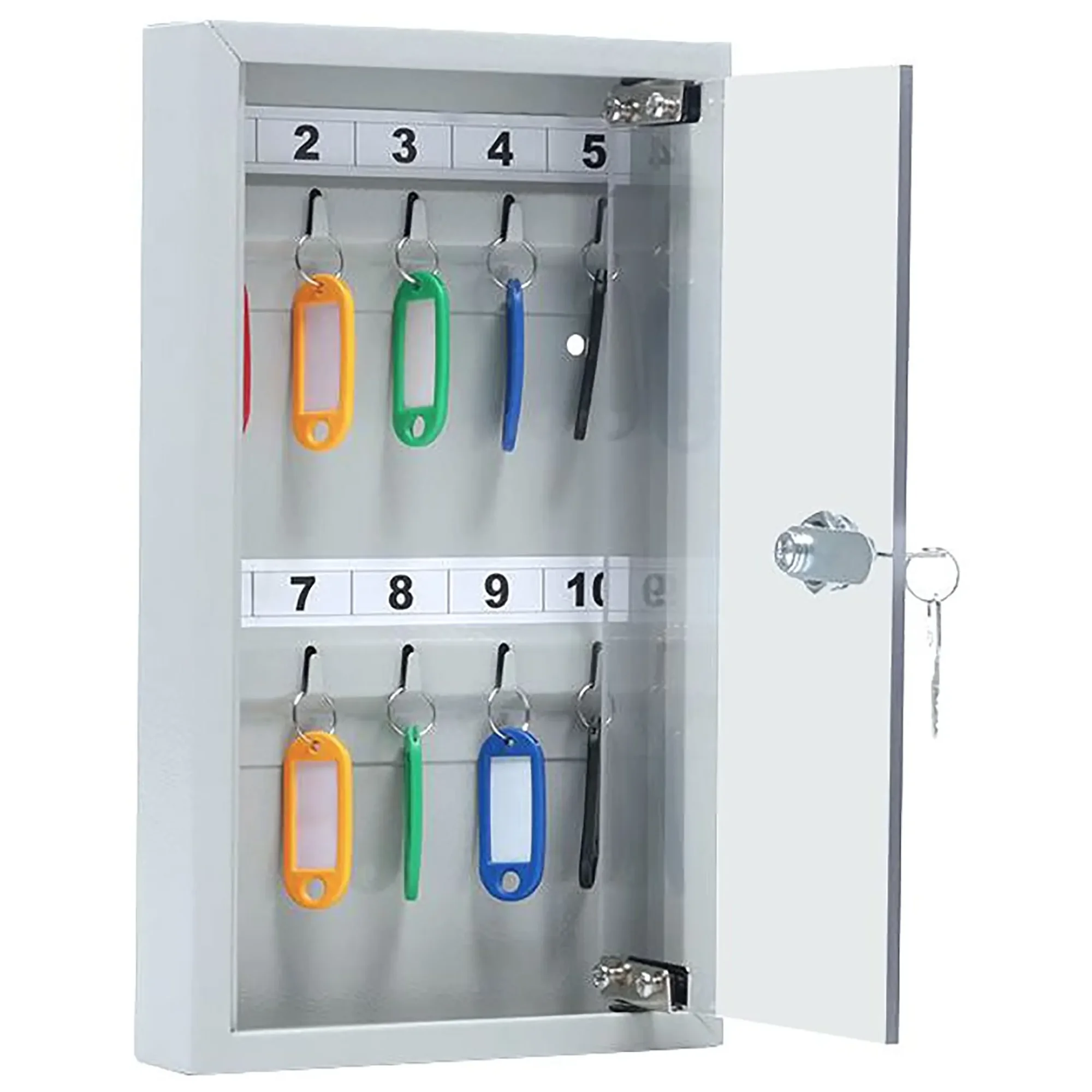 - Полная готовность к использованию в минимальной комплектации — комплект включает ключницу и полный набор из 10 брелков. Это оптимальное решение для быстрого наведения порядка на конкретном рабочем месте без лишних затрат и без необходимости докупки аксессуаров.