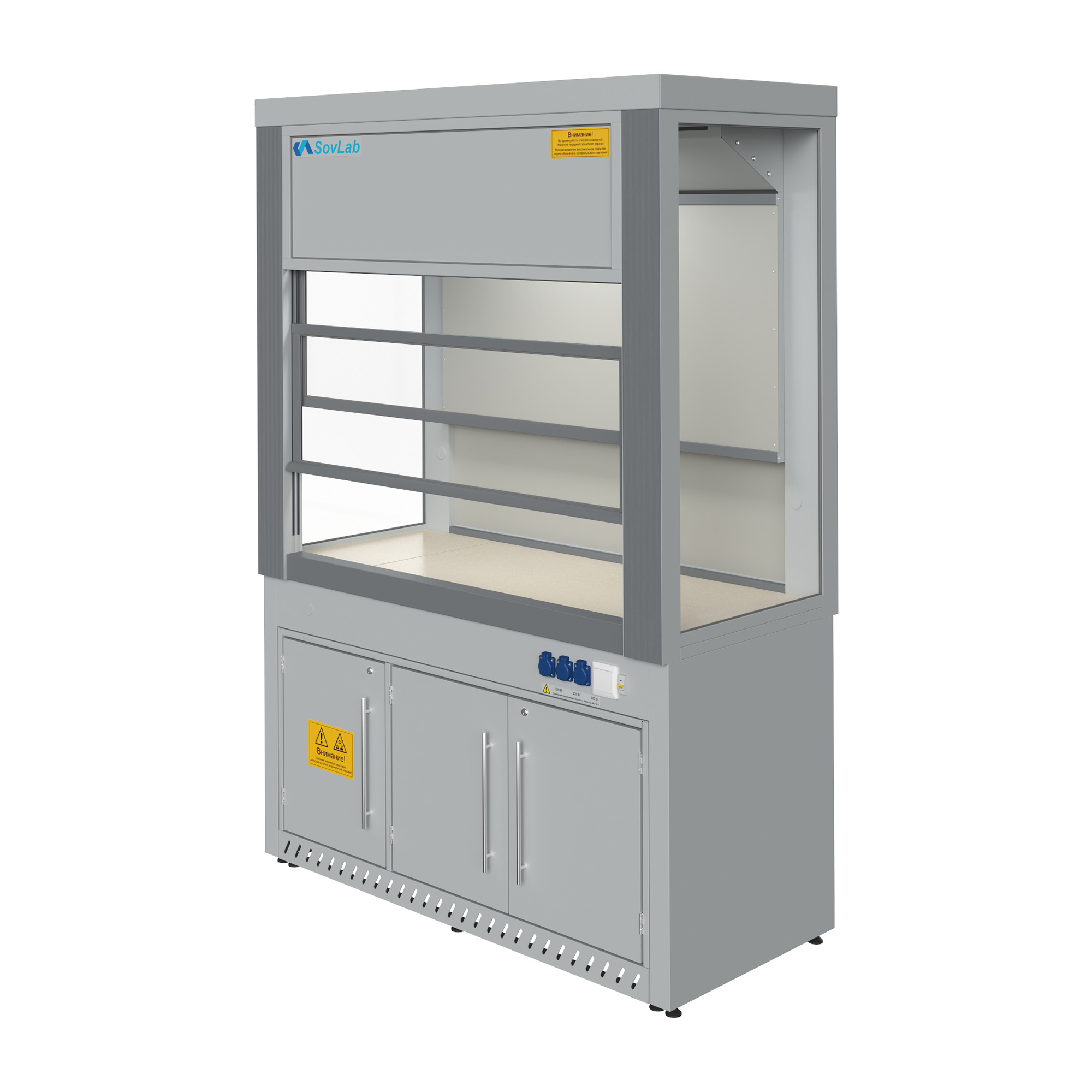 - Функциональность — шкаф подходит для установки лабораторных приборов различного типа и размера, оптимизируя рабочее пространство.