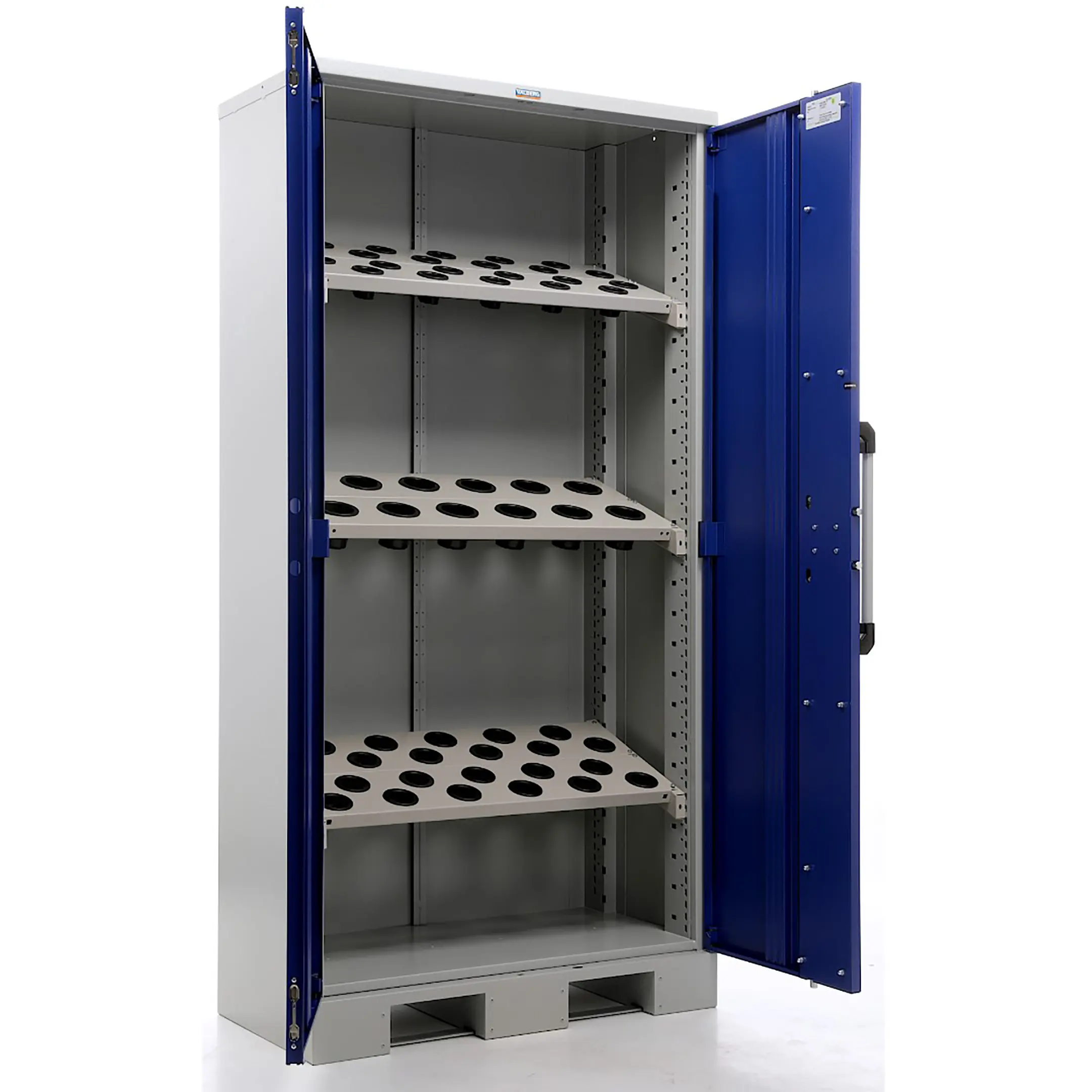 - Специализированная организация для оснастки ЧПУ — внутреннее пространство организовано с учетом габаритов и форм стандартного инструмента для станков с ЧПУ. Часто включает регулируемые полки, перфорированные панели с усиленными крючками для держателей, специальные гнезда или держатели для точного и безопасного размещения каждого элемента оснастки.