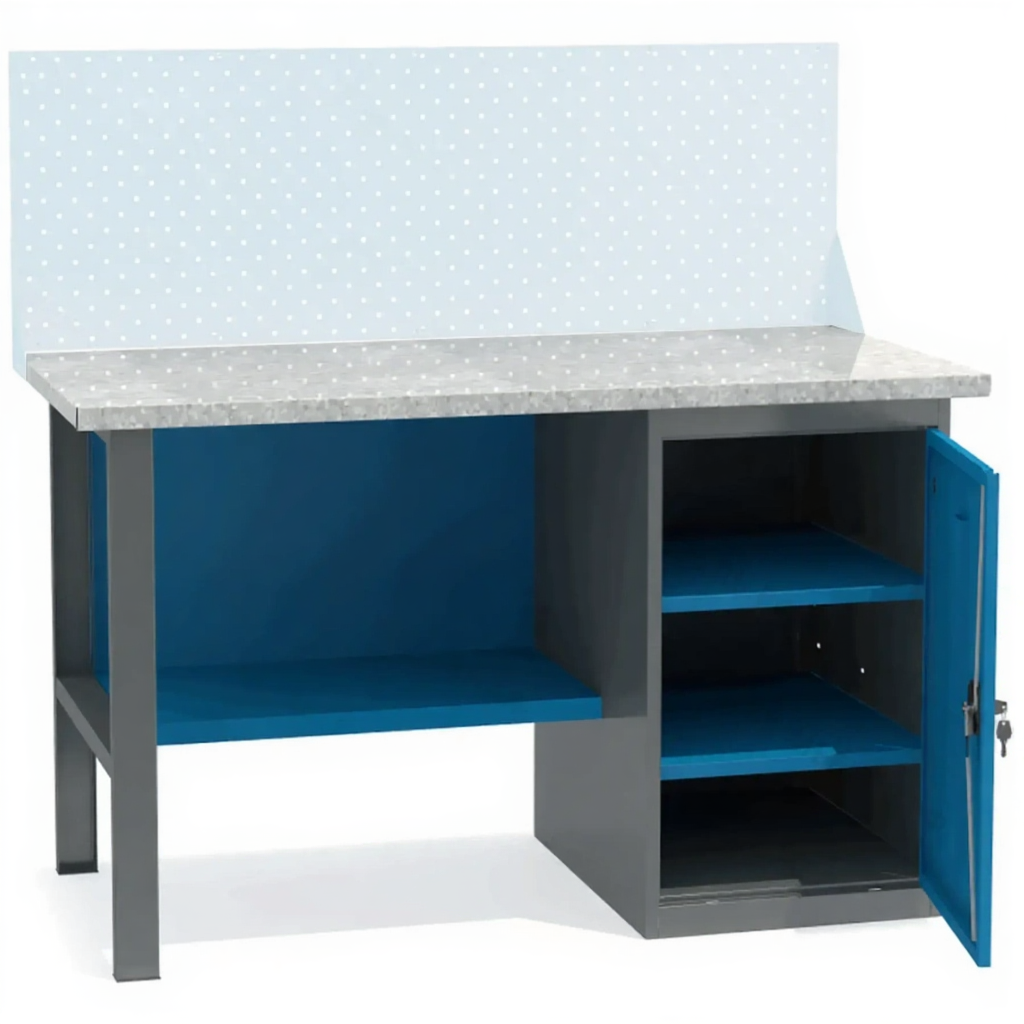 Верстак ВТ-1.4 с тумбой — это надежное и функциональное решение для оборудования рабочей зоны на предприятии, в гараже, мастерской, учебном классе. Прочная конструкция выдерживает значительную нагрузку, что позволяет выполнять даже силовые операции.