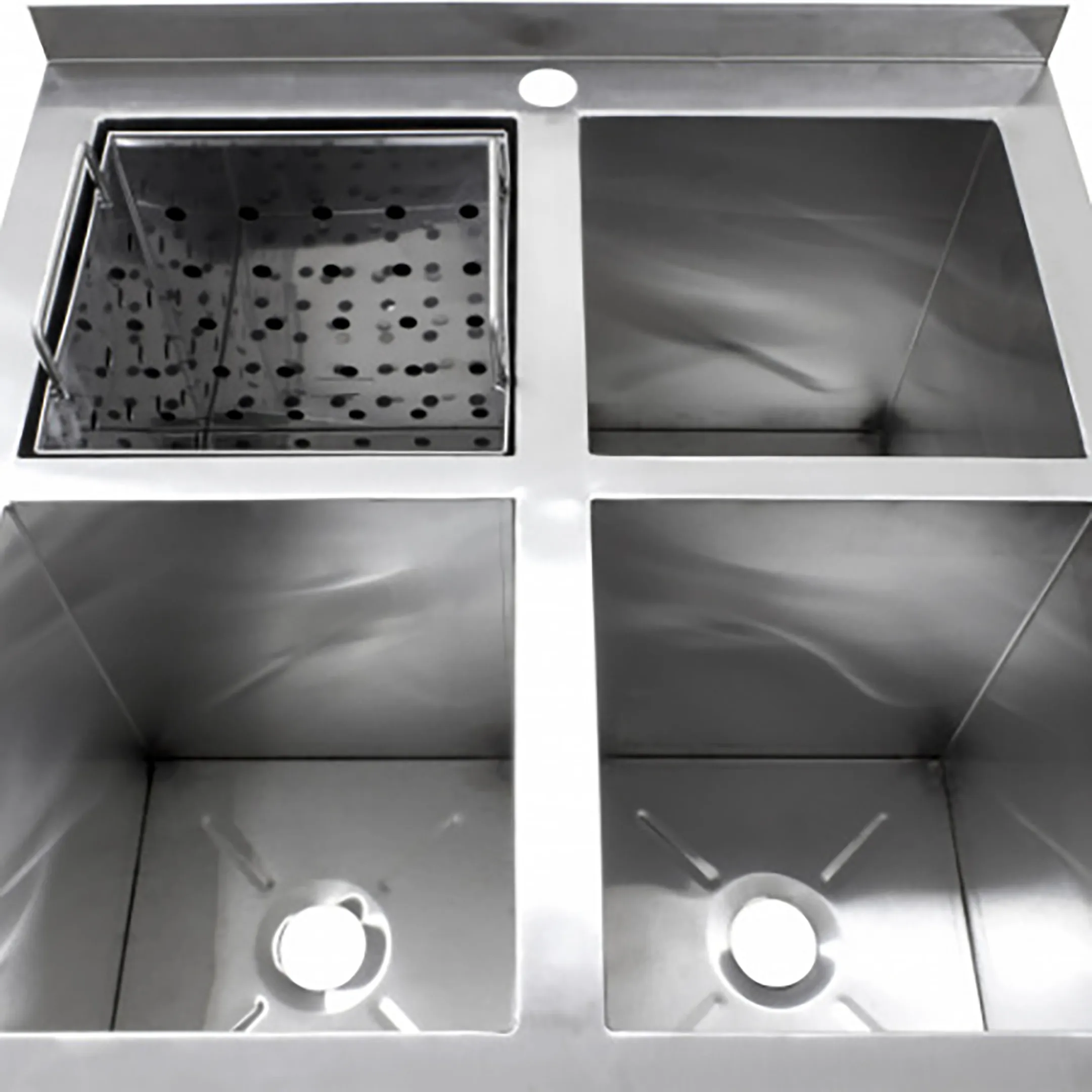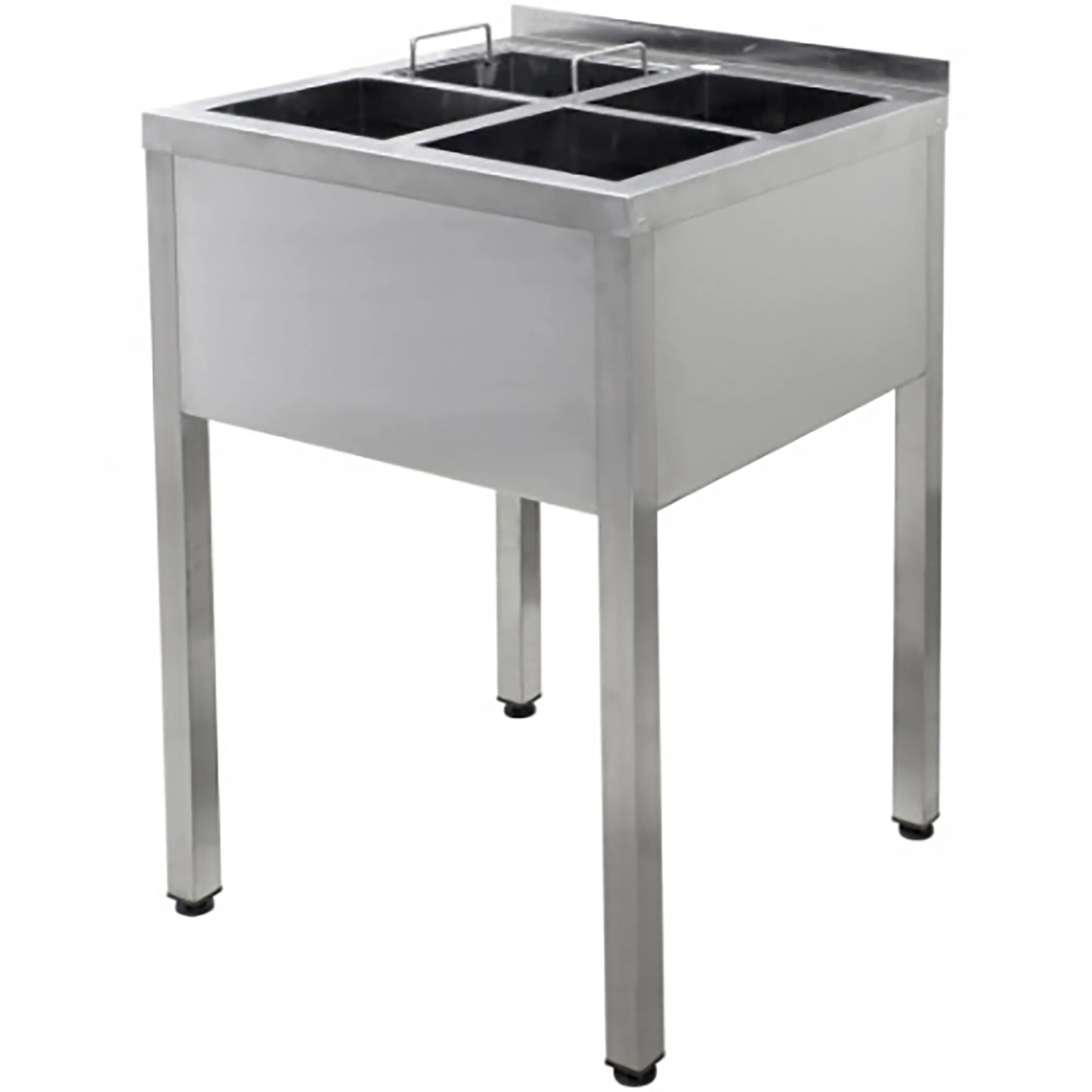 • Ванна моечная ВМОя-6/6-М, имеет 4 независимых ёмкости из нержавеющей стали марки AISI 430 толщиной 0,8мм.