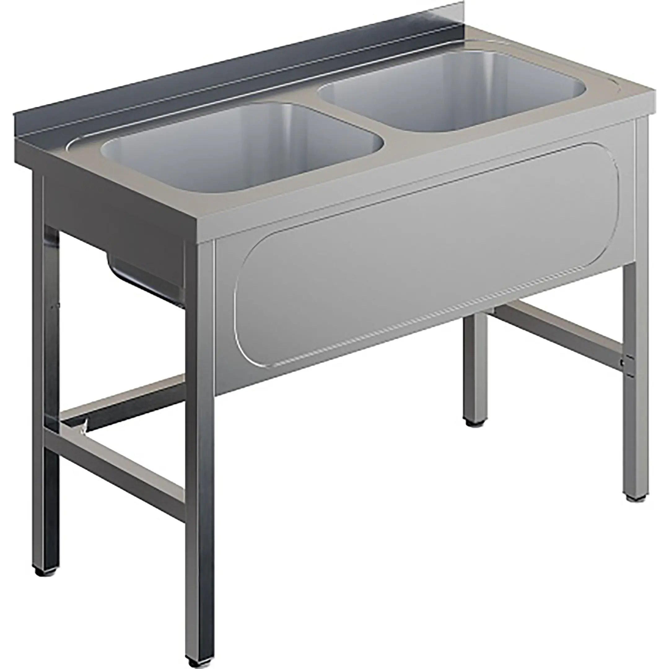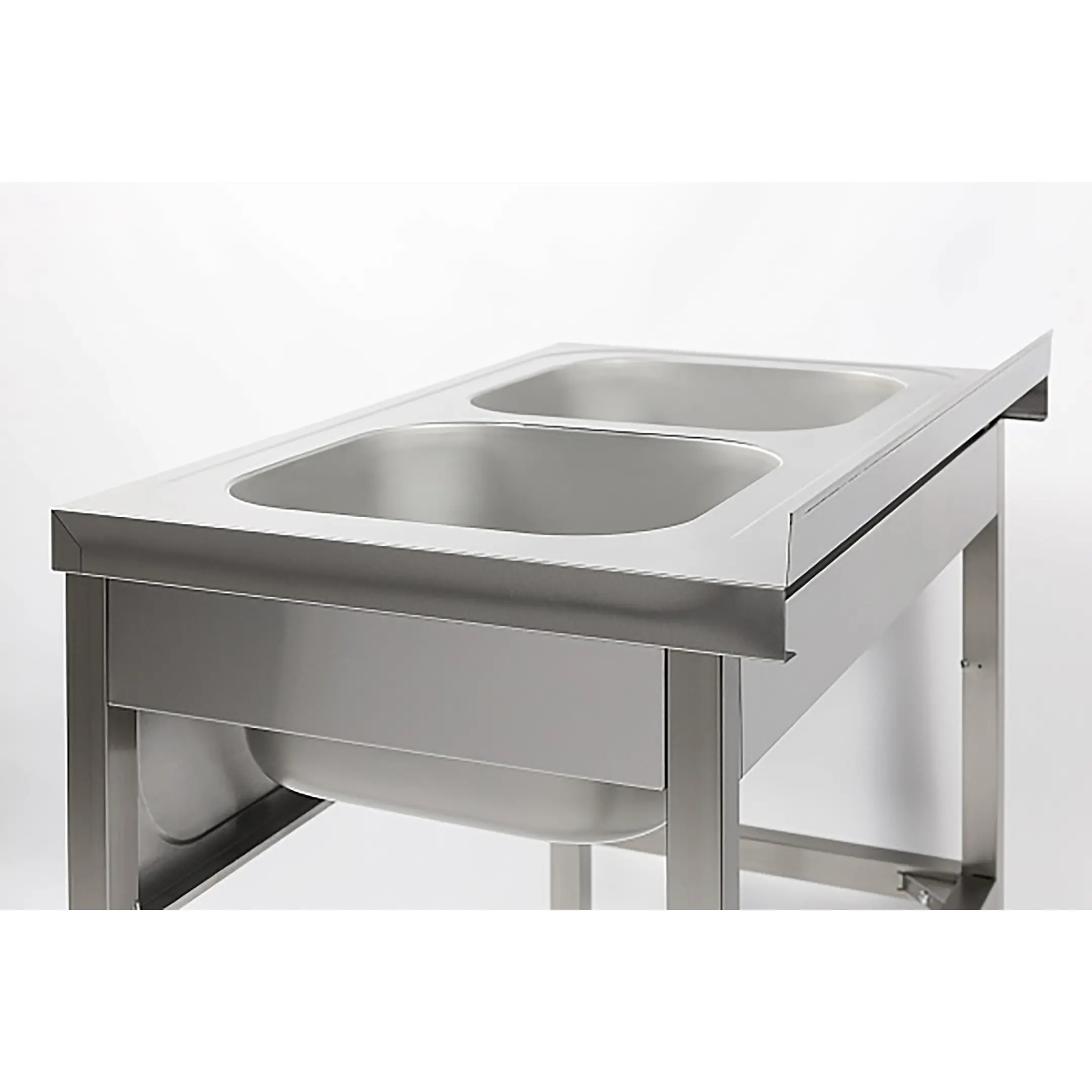 Ванна моечная двухсекционная цельнотянутая с бортом ВМЦ-2/12/7-Б разработана для применения в моечных отделениях предприятий общепита и торговли различного формата, пищевых производств и пищеблоков для мытья посуды, кухонного инвентаря, продуктов питания и рук персонала.