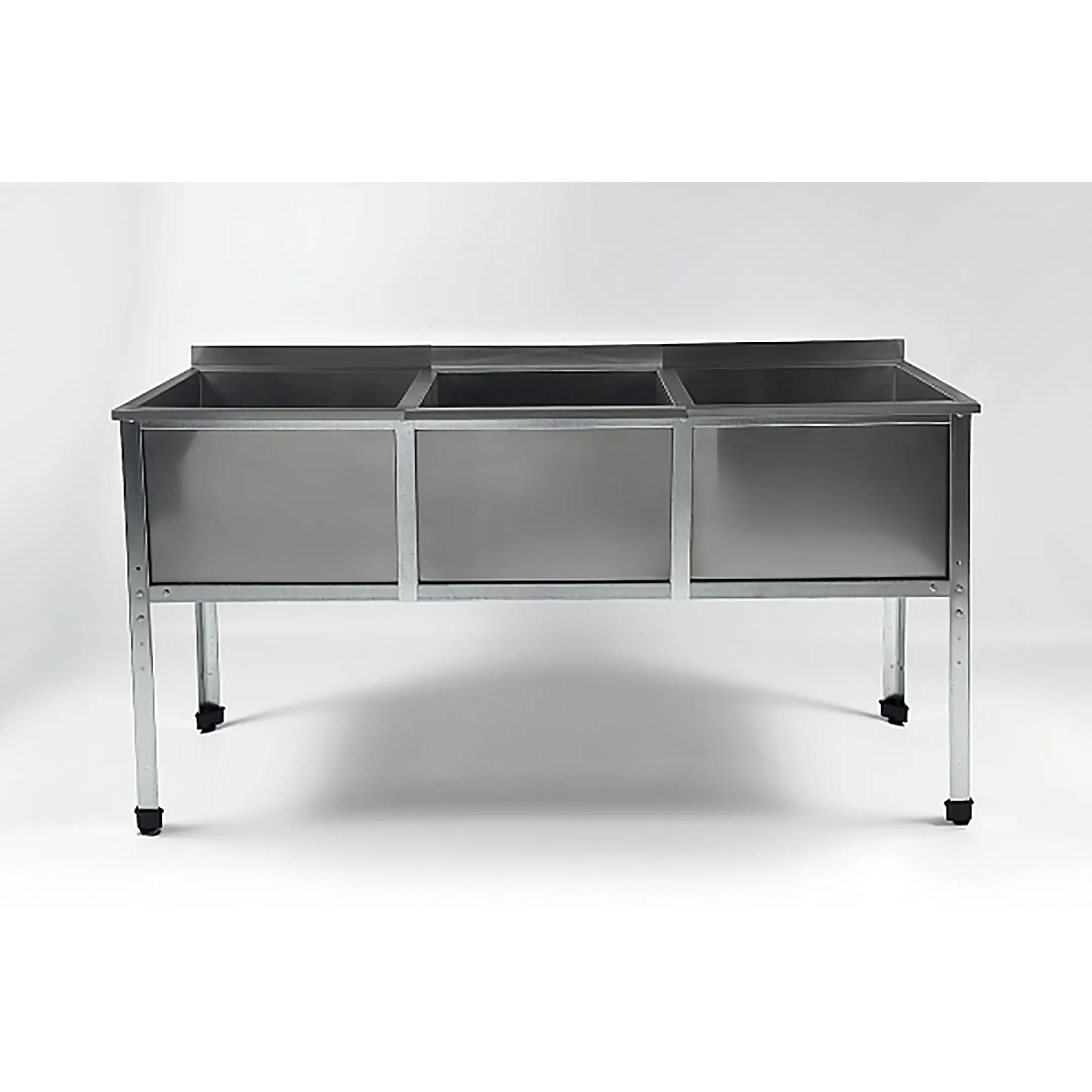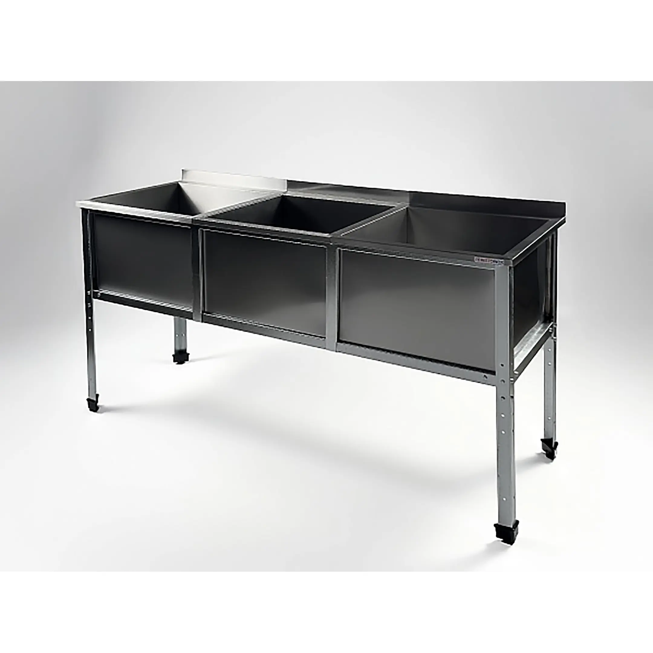 Ванна моечная трехсекционная с бортом ВМС-3/4-Б-ЭК разработана для применения в моечных отделениях предприятий общепита и торговли различного формата, пищевых производств и пищеблоков для мытья посуды, кухонного инвентаря, продуктов питания и рук персонала.