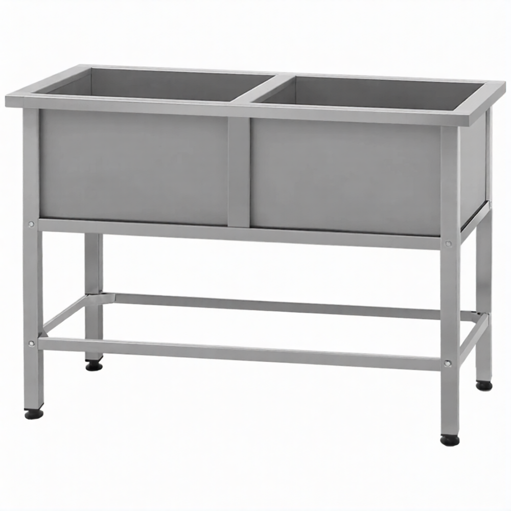 Ванна моечная ВМСн 530/2 2 м/о 430х430х300 (полка 2 отв. борт; ножка проф. тр. 40х40)