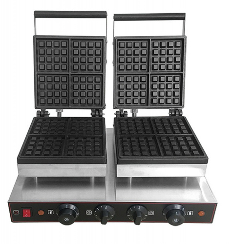 - Две рабочие поверхности — каждая рассчитана на 4 вафли размером 100х100х15 мм, общая производительность до 8 вафель за цикл.