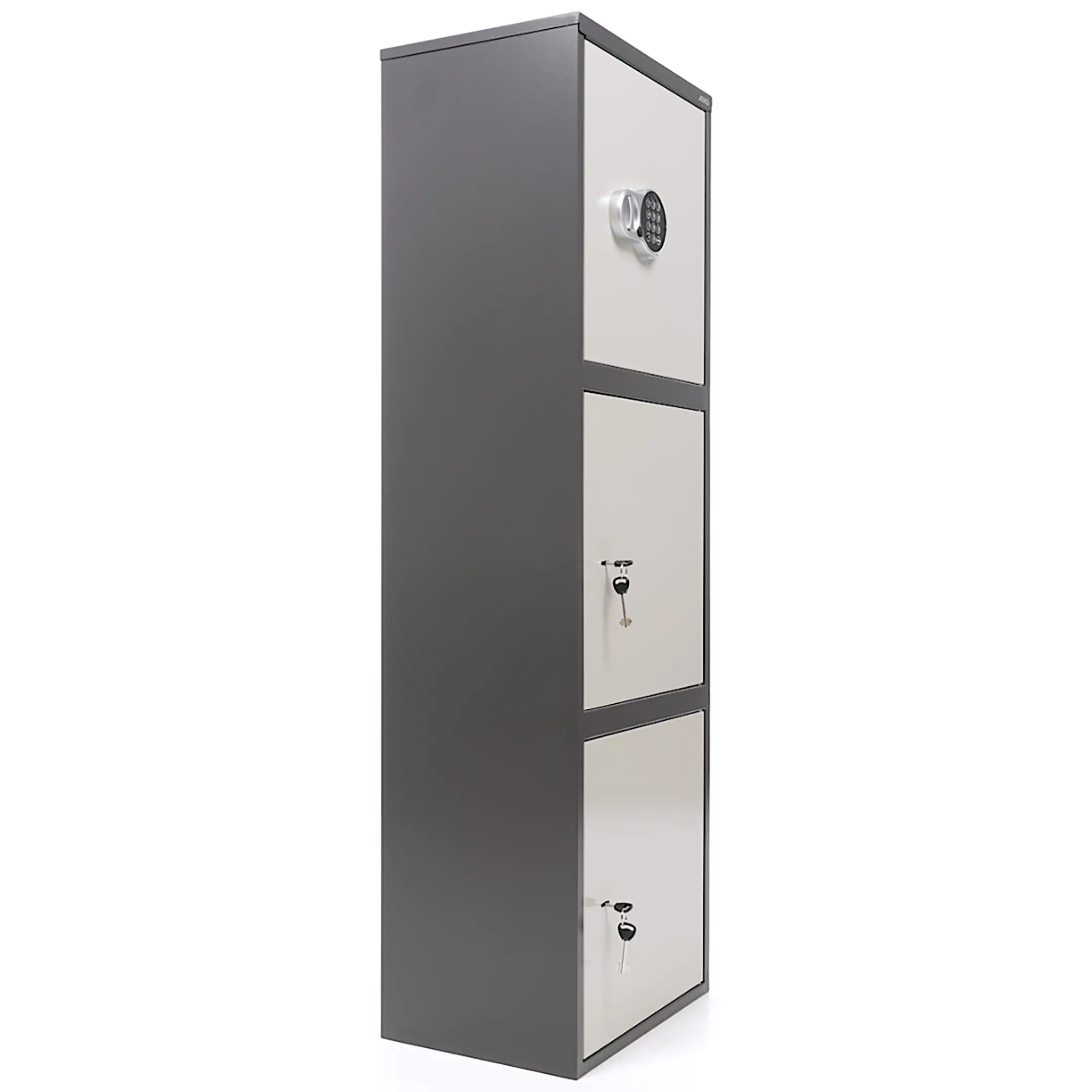 - комплектуется ключевым замком + электронный замок PLS-1( электронный замок устанавливается только на верхнюю дверь, на остальные – ключевой);