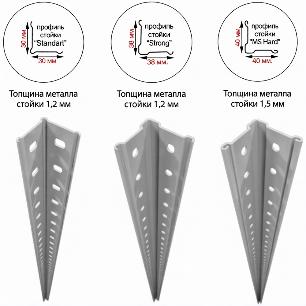 • толщина металла стойки – 1,2 мм;