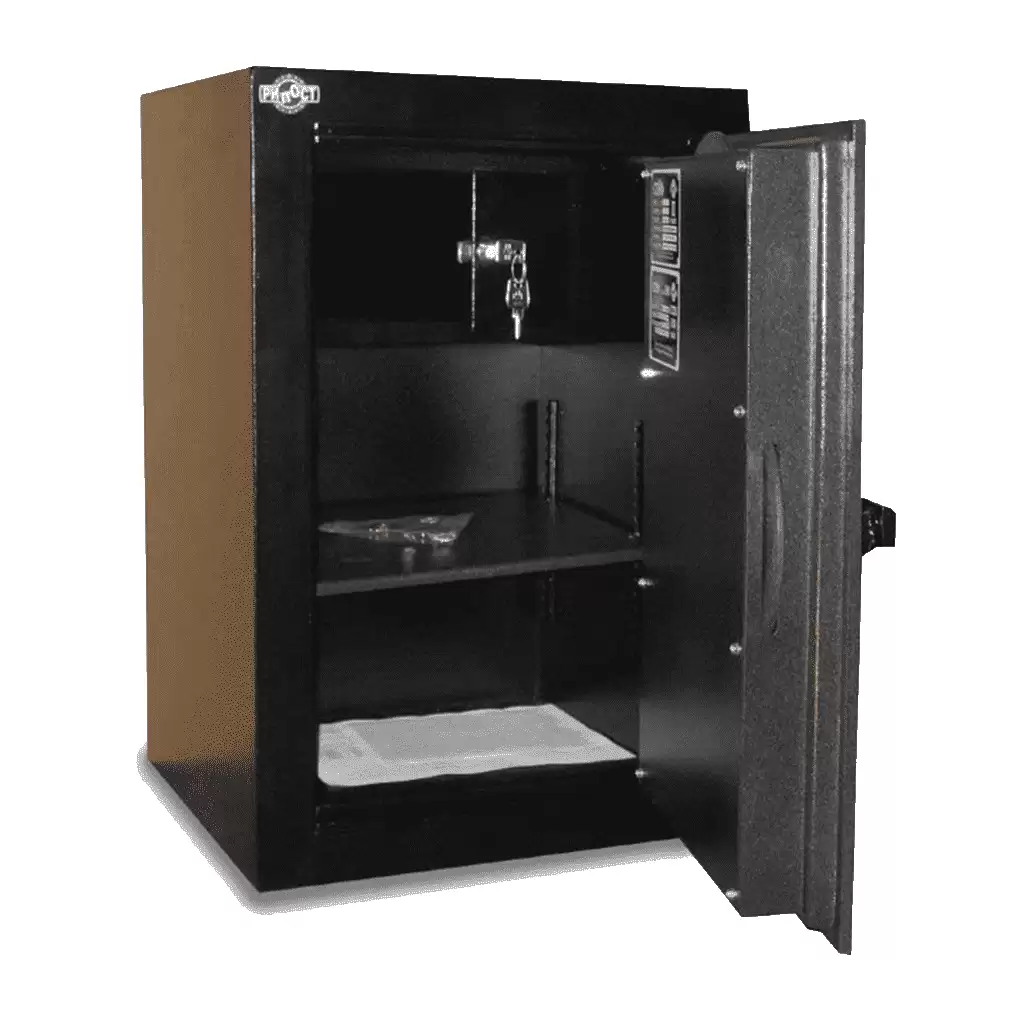 - корпус сейфа имеет усиленный двухслойный сварной стальной каркас, выполненный из листовой стали и заполненный специальным бетоном;