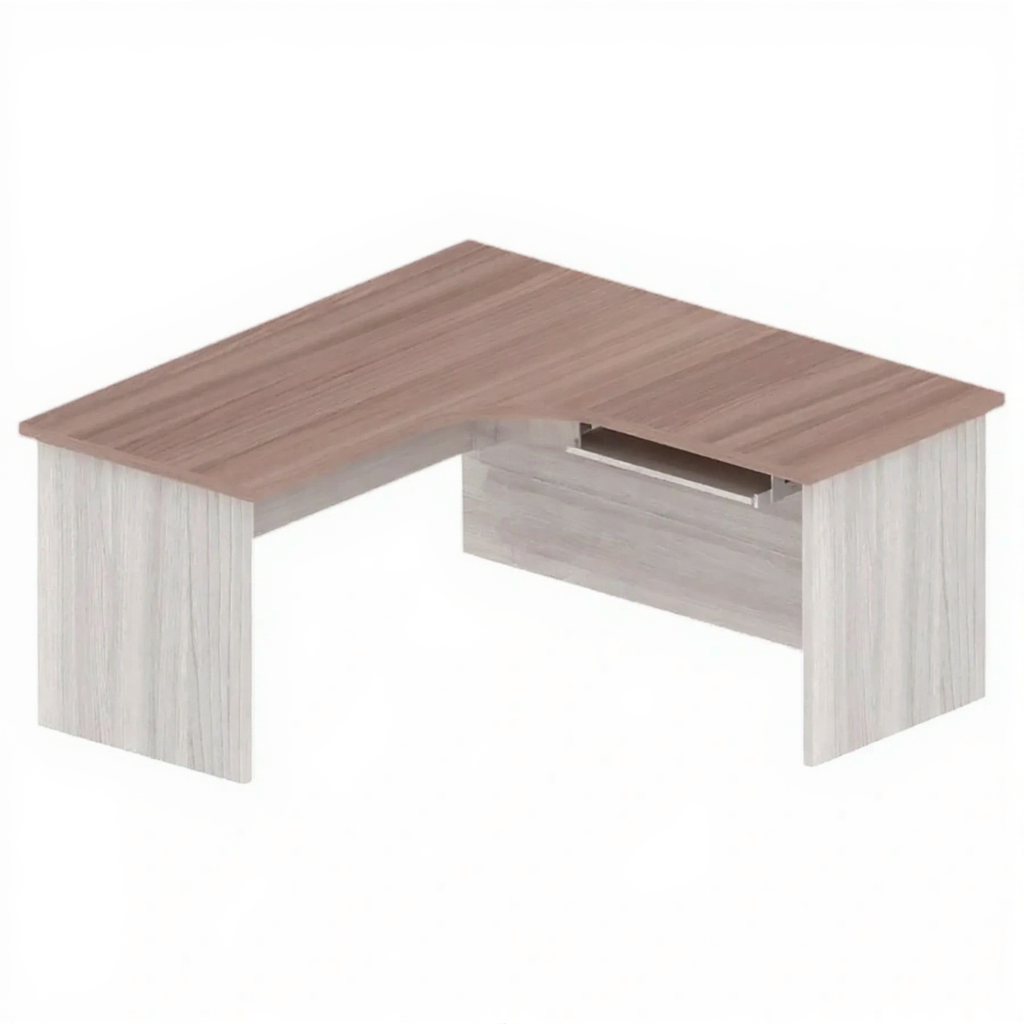 Стол письменный угловой ОФ-СТ-184, ясень шимо светлый с фасадами, ясень шимо темный — это стильное рабочее место с контрастным дизайном для организации комфортных рабочих зон в офисах, административных учреждениях и учебных заведениях. Угловая конструкция стола оптимально использует пространство помещения, предоставляя просторную рабочую поверхность. Элегантное сочетание светлой столешницы "Ясень Шимо Светлый" с темными фасадами "Ясень Шимо Темный" создает современный двухцветный эффект, добавляя интерьеру глубины и стильной выразительности.