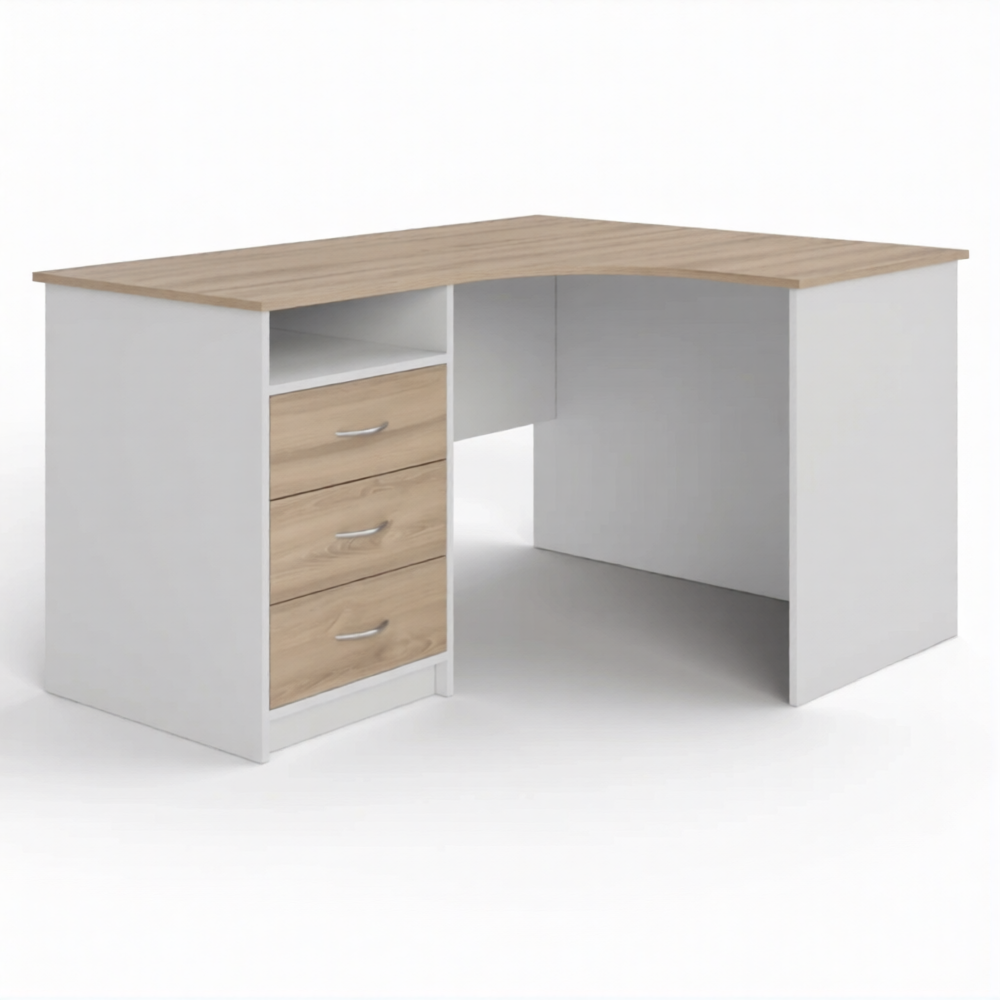 Стол рабочий угловой с тумбой СУ-1 правый (корпус ЛДСП белый, столешница ЛДСП дуб сонома)