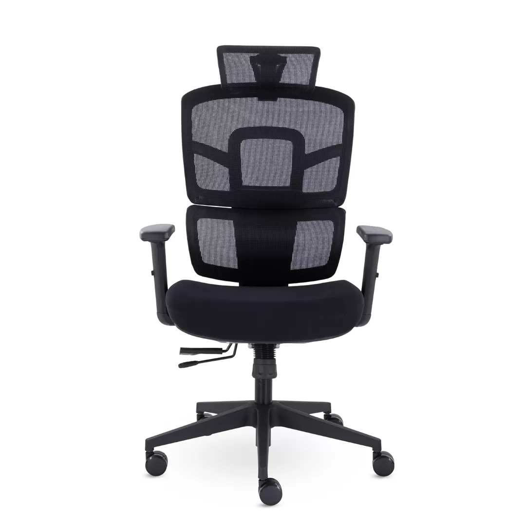 - Современный дизайн — черный каркас и лаконичные линии создают аккуратный, стильный и профессиональный внешний вид кресла.
