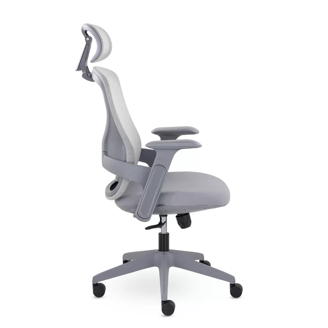 - Современный дизайн — серый каркас и лаконичные линии создают аккуратный, стильный и профессиональный внешний вид кресла.