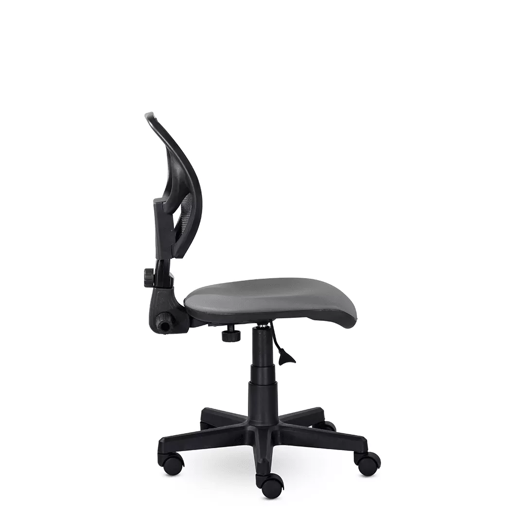 - Эргономичная поддержка спины без подлокотников — анатомическая форма спинки обеспечивает комфортную посадку и способствует правильной осанке, а отсутствие подлокотников делает кресло более компактным и удобным для работы за столом стандартной высоты.