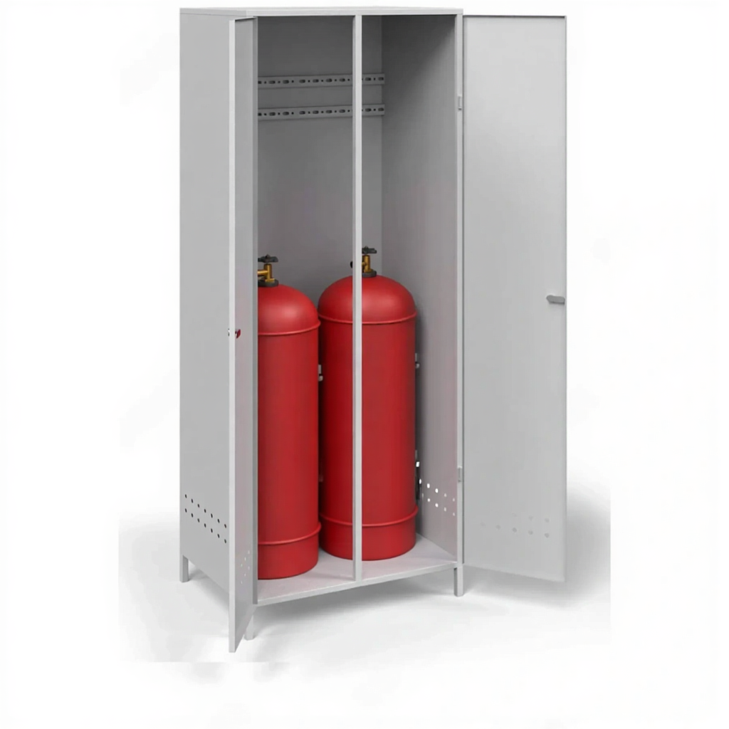 - Надежная защита имущества и строгое соответствие нормативам — усиленный корпус с мощным запирающим механизмом гарантированно предотвращает несанкционированный доступ и кражу баллонов. Использование такого шкафа является безупречным решением для выполнения требований пожарных инспекций, правил ПБ и ГОСТ на промышленных предприятиях.