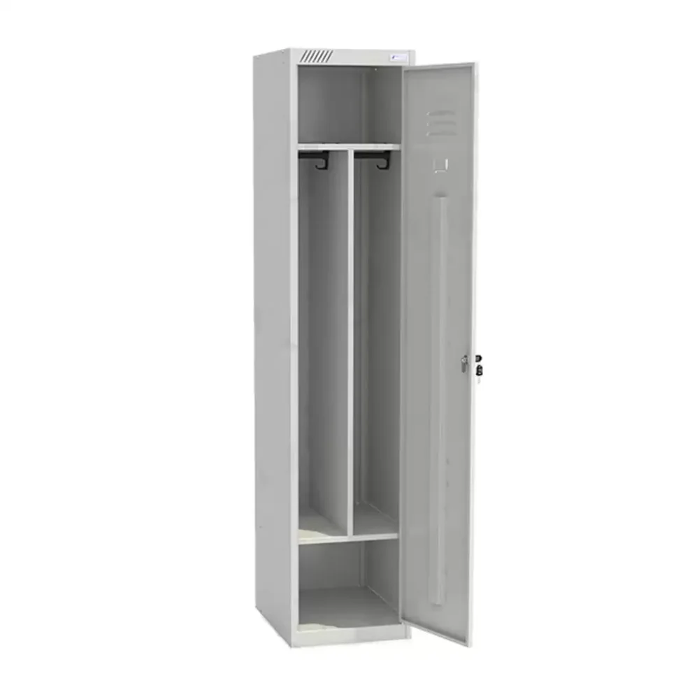 Металлический модульный шкаф для одежды ШРС-11-400 с перегородкой используется для хранения сменной одежды в офисных, производственных, спортивных помещениях.