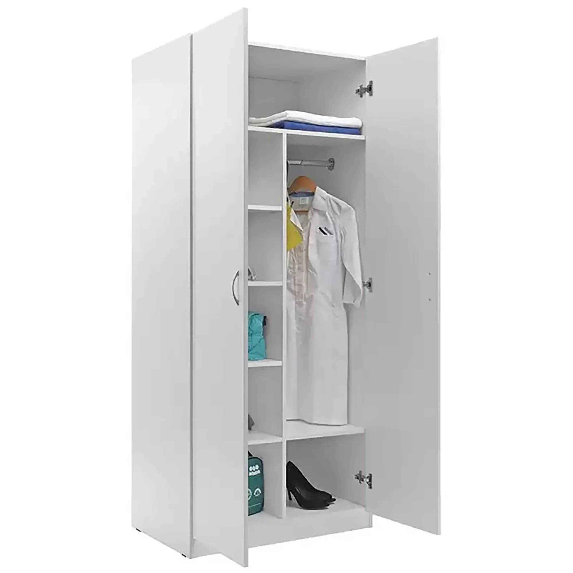 • Комплектуется съемными и несъемными полками, вертикальной перегородкой и хромированной перекладиной для вешалок;