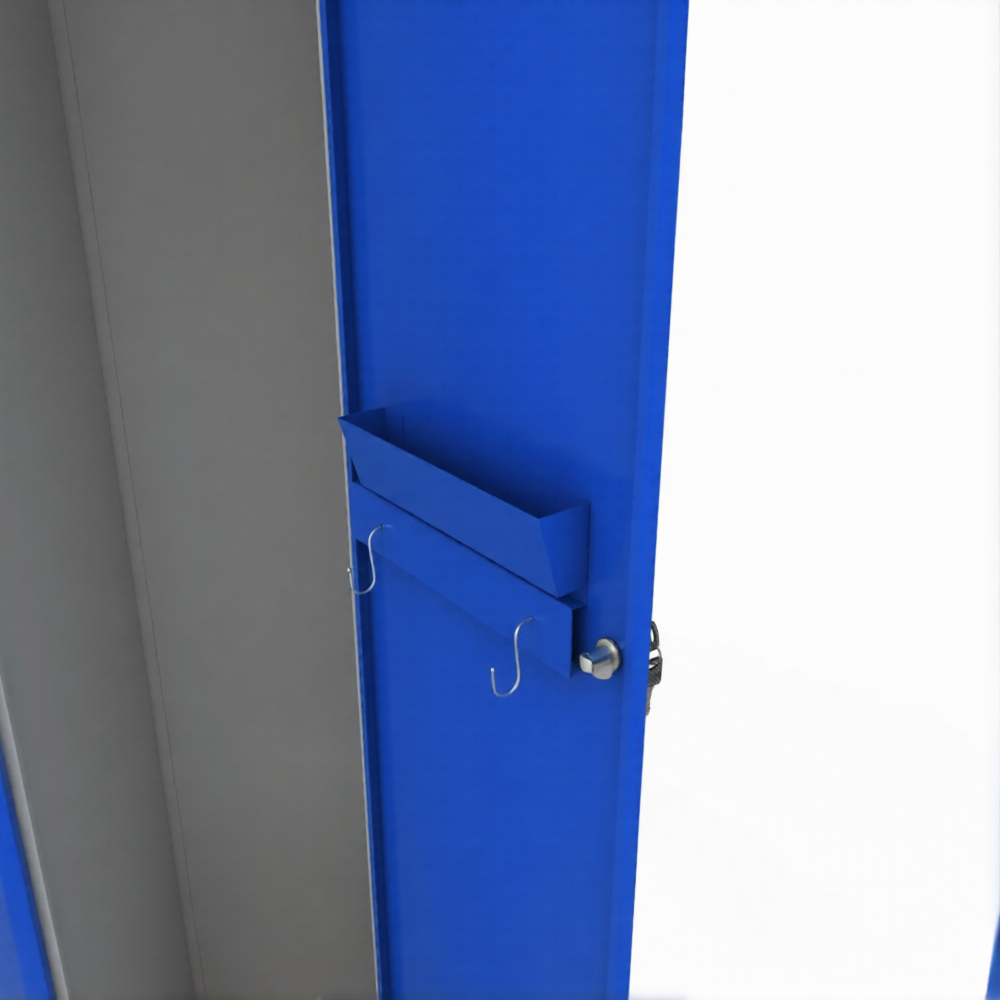 • Двери оснащены: крючками для полотенец - 2 шт., лотком В70хШ180хГ50 мм со скошенной передней стенкой для хранения мелочей (ключей, моб. телефона, очков и т.п.), держателями бирок В42хШ92 мм